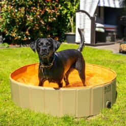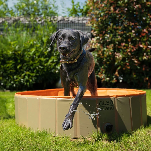 Der Hunde-Pool ist in sekundenschnelle ohne lÀstiges Aufpumpen auf- und abgebaut. Der Becken-Innenboden ist mit sicherem Anti-Rutsch-Material ausgestattet. Dem besonders starken und robusten Material können Hundekrallen nichts anhaben. Er ist leicht und hygienisch zu reinigen und mit einem praktischen Wasser-Ablassventil ausgestattet. Bei Nichtgebrauch ist der Hunde-Pool platzsparend zusammenlegbar.