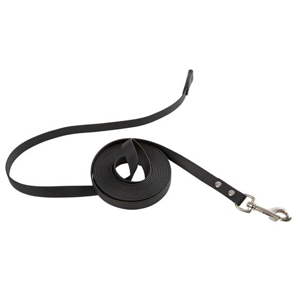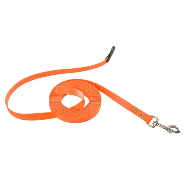 Die reißfeste Leine aus reinem Biothane ist ideal fürs Training. Sie bleibt nicht an Dornen hängen, verknotet sich nicht, liegt sogar bei Nässe gut in der Hand und ist wasserfest. Unempfindlich gegen Schmutz. Witterungs- und UV-beständig, schimmelfrei und wirkt antibakteriell. Mit Lederkappe.