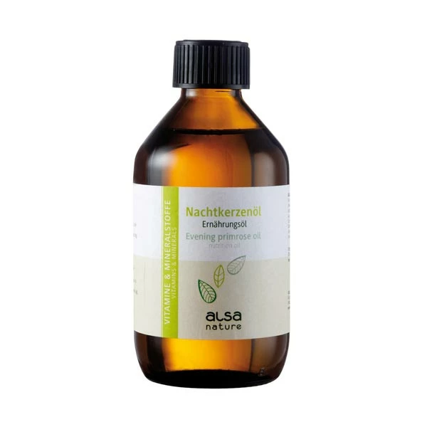Das kostbare Öl aus den Samen der Nachtkerzen ist eine natürliche Quelle wertvoller Fettsäuren wie Palmitin, Linol, Gamma-Linolen und Arachnin. Schon vor vielen hundert Jahren nutzten die Indianer Nordamerikas die Nachtkerzen. alsa-nature Nachtkerzenöl ist als Nahrungsergänzung besonders empfehlenswert bei Haut- und Fellproblemen sowie zur Stärkung der körpereigenen Abwehrkräfte und des Nervensystems.