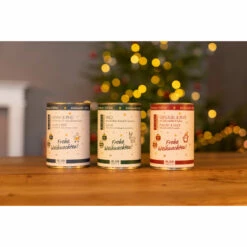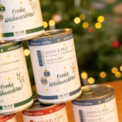 Der festliche Menü-Mix ist eine ausgewogene Zusammenstellung mit weihnachtlichen Rezepturen für vierbeinige Gourmets. In dem Menü-Mix finden sich jeweils zwei Dosen pro Sorten.