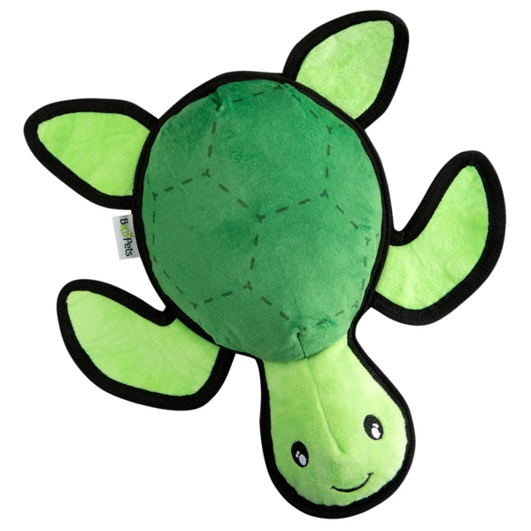 Die süße Schildkröte besteht zum größten Teil aus recyceltem Polyester sowie einer weichen Füllung aus recycelten Plastikflaschen. Durch doppelte Nähte ist sie außerdem besonders strapazierfähig und langlebig. Mit Squeaker.