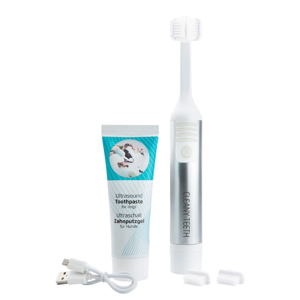 Saubere Zähne in unter 1 Minute: Der innovative dreiseitige Bürstenkopf und die besondere Ultraschalltechnologie reinigen die Hundezähne wirksam mit bis zu 60 Millionen Luftschwingungen pro Minute und reduzieren dadurch effektiv Beläge und Zahnstein – ganz ohne Narkose-Risiko. Gleichzeitig wirkt Ultraschall antibakteriell an Stellen, die die normalen Borsten nicht erreichen, wie Zahnzwischenräume und Zahnfleisch. Reinigt bewegungs- und geräuschlos. Einfach aufladbar via USB-Kabel.