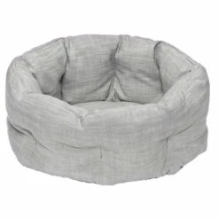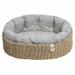 Dieses Hundebett ist durch seine sanften Farbtöne und seinen umliegenden, handgeflochtenen Korb aus nachhaltigem Seegras eine echte Augenweide. Zudem bettet das innenliegende Kissen mit Baumwollbezug den Hund besonders weich und bequem für einen erstklassigen Liegekomfort zu jeder Tages- und Nachtzeit.