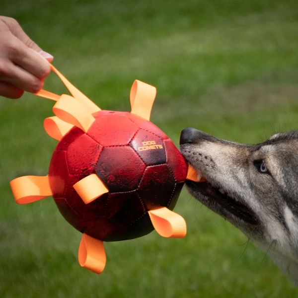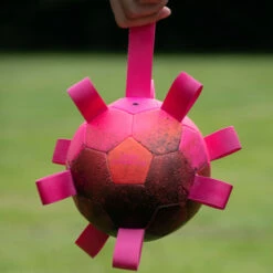 Weicher Ball mit idealer Sprungfähigkeit für den Spieltrieb: Er besteht aus drei Materialschichten (Kautschuk, umgeben von Baumwolle mit einer PU-Außenseite) und ist dadurch besonders langlebig. Durch die robusten Nylonschlaufen lässt er sich gut durch den Vierbeiner greifen – und das sowohl an Land als auch im Wasser (dank seiner schwimmfähigen Eigenschaften). Inkl. Pumpe.