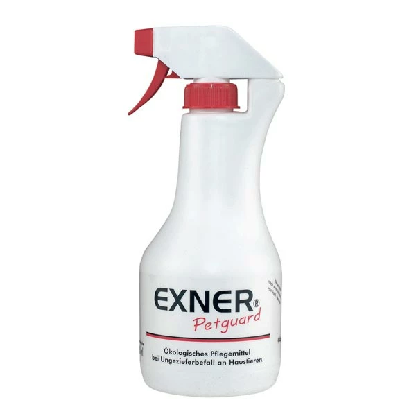 Exner-Petguard Original ist ein ökologisches Ungeziefer-Abwehrmittel für Haustiere. Es ist besonders wirksam gegen Flöhe, Läuse, Milben, Zecken usw. – ohne Gift und ohne Chemie. Eine umweltfreundliche und tierfreundliche Alternative. Es vertreibt Ungeziefer ab, nimmt den Juckreiz und beruhigt die Haut. Inhalt: 500 ml.