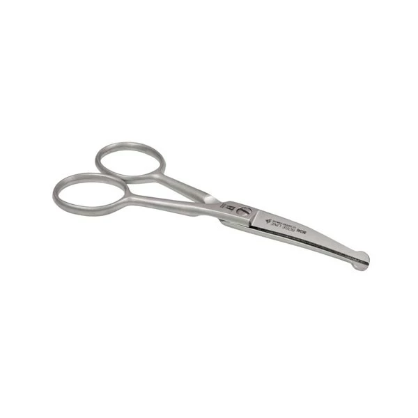 Die gebogene Form dieser mikrogezahnten Schere ist ideal für das präzise Schneiden des Fells im Gesichtsbereich des Hundes.