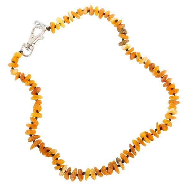 Bernsteine, die nicht poliert sind, sollen ĂŒber HeilkrĂ€fte verfĂŒgen und sind unter anderem bekannt fĂŒr eine natĂŒrliche Zeckenabwehr. Die 100 % naturbelassene, in Handarbeit gefertigte Bernsteinkette kann auĂerdem bei Symptomen wie Depressionen, Ăngsten, NervositĂ€t, EntzĂŒndungen, Magen- und Darmerkrankungen etc. helfen. Farbe: cognac.