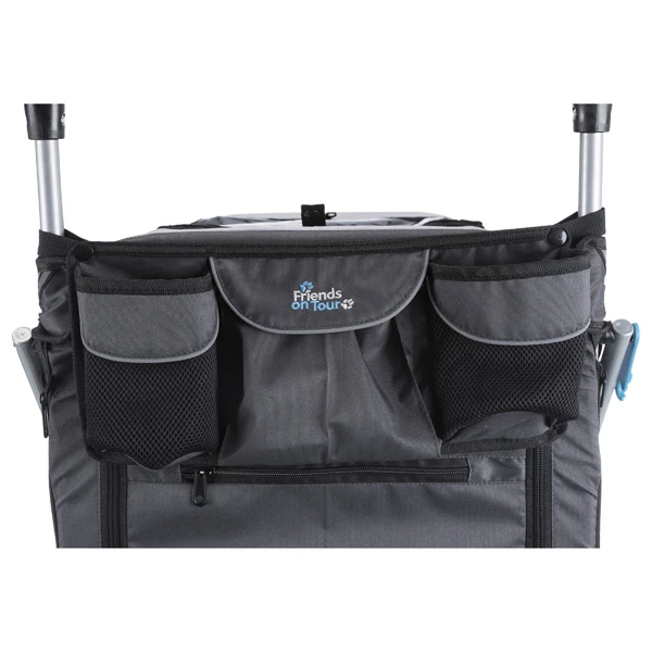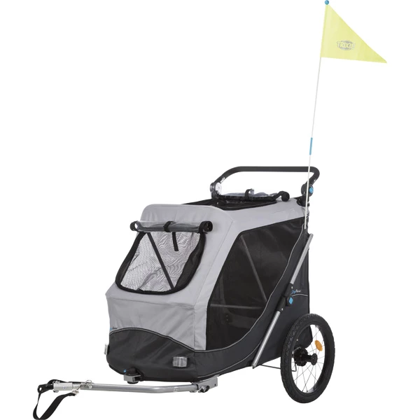 Die Netzöffnungen (oben/vorne mit Regenschutz) und das innenliegende Kissen aus viskoelastischem Schaum bieten höchsten Komfort für den mitfahrenden Vierbeiner. Einfacher Zustieg durch die Öffnung am Heck. Mit integrierter Kurzleine, diversen Taschen und Getränkehaltern sowie herausnehmbarer Anti-Rutsch-Bodenplatte. Höchste Sicherheit durch beidseitige Feststellbremse, Reflektoren und ein Signalwimpel. Umbaubar zum Jogger (Frontrad nicht im Lieferumfang enthalten, separat erhältlich). Inkl. Anhängerkupplung und höhenverstellbarem Griff.