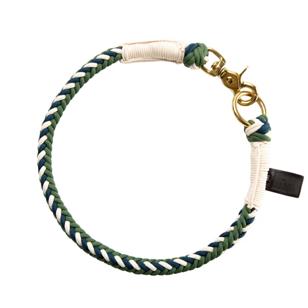Das handgeflochtene Halsband zaubert einen maritimen Look und besitzt gleichzeitig einen besonders hohen Tragekomfort. Robustes und pflegeleichtes Material. Mit einem wertigen Messing-Karabiner und einem LederanhÀnger mit geprÀgtem HUNTER-Logo.