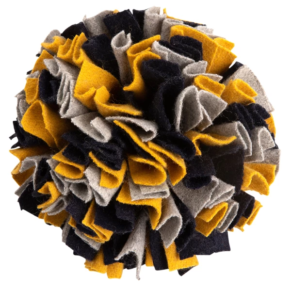 Aus upgecyceltem Material mit angenehm griffiger Haptik: In dem kuscheligen Ball lassen sich zwischen den dichten Fransen leckere Snacks oder Trockenfutter verstecken, die der Hund danach mit der Nase aufstöbern kann. Nach dem erfolgreichen Fund kann der Ball durch sein weiches Material als kuscheliges Kissen genutzt werden.