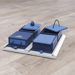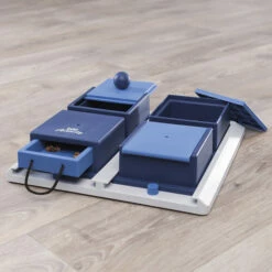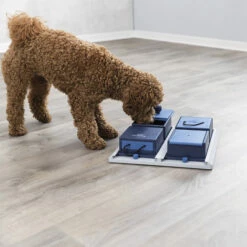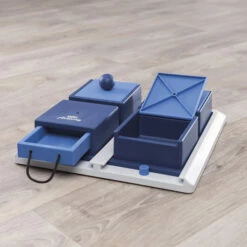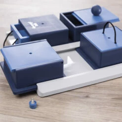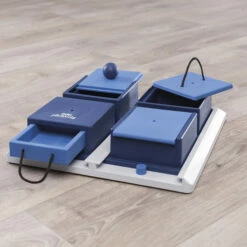 Die vier Fächer können Sie mit Leckerlis oder Trockenfutter befüllen, die Ihr Hund aufspüren muss. Jedes Fach erfordert eine andere Öffnungstechnik – Ihr Hund muss mit der Schnauze oder Pfote stupsen, schieben und ziehen, damit er an die Leckerlis herankommt. Rutschfest. Inklusive Übungsheft mit Tipps und Tricks.