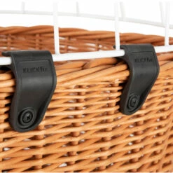 Hochwertiger Hundekorb aus Weidengeflecht als ideale Lösung für alle Fahrradtouren mit Hund: Einmal auf dem Gepäckträger montiert bietet er einen komfortablen Platz für Vierbeiner mit einem Gewicht bis 10 kg. Die robuste Drahthaube ist mit zwei Spezialgelenken am Korb befestigt und lässt sich sowohl ganz entfernen als auch, dank ausgeklügelter KLICKfix Verriegelung, sicher und einfach öffnen und schließen. Kombiniert mit dem variablen Wind- und Wetterschutz bietet der Fahrradkorb außerdem viele Möglichkeiten, Licht- und Luftöffnungen zu schaffen. Mit Tragegriff, komfortablen Bodenkissen und Reflektor. Inhalt: Fahrradkorb (zur Festmontage am Gepäckträger), Drahthaube, Wetterschutz.