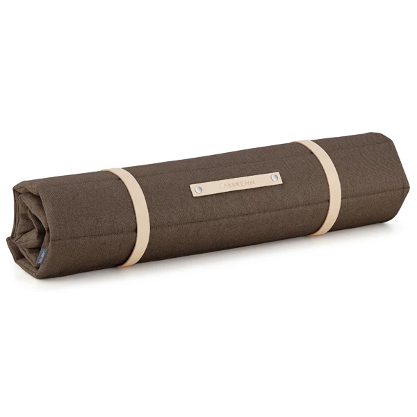 Die tragbare Matte besitzt zwei Seiten aus unterschiedlichen Materialien für einen erstklassigen Liegekomfort unterwegs und auf Reisen: Gesteppte Liegefläche mit einer angenehmen Füllung aus wärmeisolierendem Vliesstoff mit antiallergischen und nicht absorbierenden Eigenschaften. Hochelastisch, druck- und formbeständig. Details aus Naturleder.