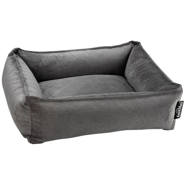 Das gemütliche Hundebett besteht aus einem modischen Cordstoff mit samtig-weicher Rippung und lädt zum Entspannen und Ausruhen ein. Mit einem stabilen und aufrechten Rand, auf dem der Hund den Kopf angenehm ablegen kann. Formstabile Verarbeitung und waschbarer Kissenbezug.