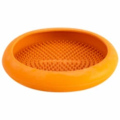 Artgerechte Beschäftigung für Zwischendurch, zur Beruhigung oder Stressreduktion: Der aus recycelbarem Naturkautschuk hergestellte Napf besitzt eine weich-genoppte Struktur im Inneren, auf der sich streichfähige und flüssige Leckereien verstreichen lassen, die der Hund danach durch Lecken aufnehmen kann. Dank der 7 Saugnäpfe an der Unterseite lässt sich der Napf dabei an fast allen harten Oberflächen (z.B. Fliesen) befestigen und bietet dadurch eine ideale Ablenkung bei z.B. der Fellpflege oder beim Duschen. Mit hohem, abgerundetem Rand für sauberen Spielspaß. Gefrierfreundliches Material.