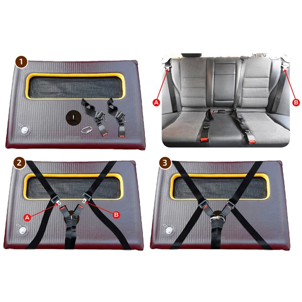 Alternative zu starren Aluminiumboxen: Diese aufblasbare Variante einer Rücksitzbox besteht aus nahezu unkaputtbarem Dropstitch-Material, ist besonders leichtgewichtig (ca. 6 kg) und schützt dank den mit Luft befüllten Wänden den Vierbeiner bei starkem Abbremsen durch den sogenannten „Airbag“-Effekt. Durch das direkte Aufpumpen auf der Rückbank des Autos passt sich die Box dieser ideal an und kann danach mit Anschnallgurten gesichert werden – dabei dauert es nur ca. 20 Sekunden, bis die Box einsatzbereit ist. Dank der Air-Komfort-Bodendämpfung werden außerdem Bodenwellen ausgeglichen und Erschütterungen gedämpft, sodass der Transport auch für ältere Hunde oder Hunde mit Hüftleiden besonders komfortabel ist. Mit 2 Seiteneinstiegsöffnungen für ein praktisches Handling sowie einer rückwärtigen Einstiegsöffnung für die alternative Verwendung im Kofferraum. Bei Nichtgebrauch einfach zusammenfaltbar. Mit Notausstieg. Schadstoffrei, temperatur- und UV-beständig. Inhalt: 1 Transportbox, 1 Fußluftpumpe, 1 Stoßstangenschutz, 1 Seiteneinstiegsschutz, 1 Befestigungsadapter, 1 aufblasbarer Luftschlauch, 1 Repair-Kit.