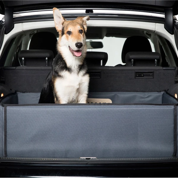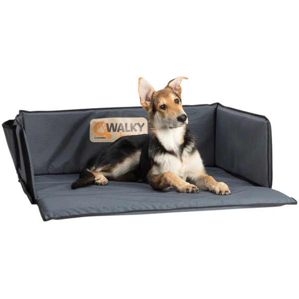 - Der Kofferraumschutz “Walkybond” bietet Ihnen und Ihrem Auto einen Schutz vor all diesen UmwelteinflĂŒssen und kann auch zum Transport von z.B. Werkzeug oder GartengerĂ€ten hilfreich sein. Die hohen WĂ€nde schĂŒtzen den Kofferraum vor Hundehaaren und Feuchtigkeit und dank der gepolsterten LiegeflĂ€che liegt Ihr Hund auch wĂ€hrend der Fahrt bequem. Das wasser- und kratzfeste Material lĂ€sst sich mit einem feuchten Tuch schnell und einfach reinigen. Die Vorderwand kann fĂŒr einen vereinfachten Einstieg ausgeklappt werden und bietet so gleichzeitig einen Kratzschutz fĂŒr die StoĂstange. ZusĂ€tzlich wurde eine Seitentasche integriert, um z.B. Leine und Spielzeug wĂ€hrend der Fahrt zu verstauen. Zur extra Sicherung Ihres Hundes wurden zwei Leinenbefestigungsösen an den Innenseiten des “Walkybond” angebracht. Dank des leichten Gewichts von nur 3 kg und der mitgelieferten Aufbewahrungstasche kann die Autowanne kinderleicht verstaut werden. Auch auĂerhalb des Autos kann der “Walkybond” als Outdoorbett fĂŒr Ihren Hund genutzt werden. Mittels Ăsen am Boden des Bettes, kann dieses mit Zelt-Heringen im Erdboden verankert werden. Die Heringe sind nicht im Lieferumfang enthalten.