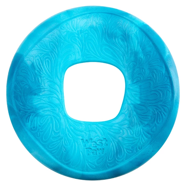 „Sea the Change“: Die Hundefrisbee besteht zu 12,5 % aus recyceltem, ozeangebundendem Kunststoff und zu 87,5 % aus recycelbarem Zogoflex-Material und ist dadurch ein besonders nachhaltiges Spielzeug. Gleichzeitig ist sie besonders zahnfreundlich und lässt sich durch die Aussparung in der Mitte von dem Hund gut aufnehmen. Für starke Kauer geeignet, schwimmfähig, spülmaschinenfest und latexfrei.