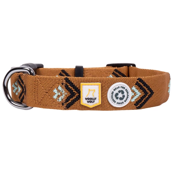 SchmĂŒckt den Hals von vierbeinigen Abenteurern: Das recycelte Polyester, aus welchem dieses umweltfreundliche Halsband besteht, spiegelt sich in den natĂŒrlichen Mustern und Farben des gewebten Materials wider. Mit einem Metall-D-Ring zur Leinenbefestigung.